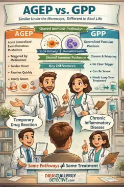 AGEP vs GPP: When Skin Reactions Look Similar but Behave Very Differently Skin rashes can be alarming, especially when they appear suddenly and spread quickly. Two conditions that often cause confusion are acute generalized exanthematous pustulosis (AGEP) and generalized pustular psoriasis (GPP). AGEP vs GPP is a comparison that often raises confusion among both patients and clinicians. These two skin conditions can appear strikingly similar at first glance, yet their causes, clinical behavior, and long-term management are very different. Understanding these differences is important — not only for accurate diagnosis,…